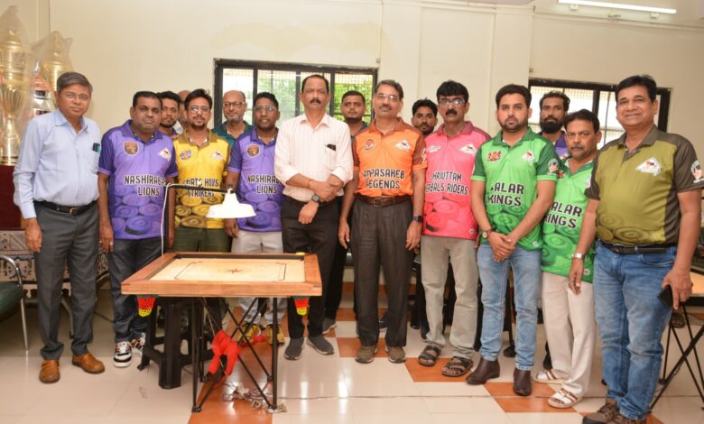 जळगाव दि.२८ जून २०२५ – जळगाव जिल्हा कॅरम असोसिएशन आणि जैन स्पोर्टस अकॅडमी तर्फे आयोजीत जैन इरिगेशन सिस्टीम्स लि. च्या प्रायोजीत जळगाव कॅरम लिग 2025 ची सुरवात कांताई सभागृह येथे झाली. पहिल्यांदाच आयोजित ही स्पर्धा आज २८ ते २९ जून दरम्यान होईल. त्याचे उद्घाटन कॅरम खेळून झाले. याप्रसंगी जैन इरिगेशन सिस्टीम्स लि. चे मीडीया व्हाईस प्रेसिडेंट अनिल जोशी, महाराष्ट्र कॅरम असोसिएशनचे उपाध्यक्ष मंजूर खान, जैन स्पोर्टस अॅकडमीचे अरविंद देशपांडे, शिवछत्रपती पारितोषिक विजेते आयशा खान, योगेश धोंगडे व संदिप दिवे यांच्यासह सहा टिमचे सहा संघ मालक उपस्थित होते. जिल्ह्यातील एका संघात पाच खेळाडू असे सहा संघ मिळून ३० खेळाडूंनी सहभाग नोंदविला. यासाठी प्रमुख पंच म्हणून पुणे येथील रहिम खान काम पाहत आहे. मकरा चॅलेंजर संघाचे संघ मालक युसुफ मकरा, आयकॉन खेळाडू सय्यद मोहसीन, नशिराबाद लायन संघाचे संघ सुपडू चौधरी, आयकॉन खेळाडू संदिप दिवे, क्रीडागृहाचे संघ मालक अमिर शेख तर आयकॉन खेळाडू शेख रईस, सालार किंग संघाचे मालक रेहान सालार, आयकॉन खेळाडू अताउल्ला खान, आप्पासाहेब महापुरुष संघाचे मालक ॲड. रवींद्र कुलकर्णी आयकॉन खेळाडू योगेश धोंगडे तर श्रीयुत्तम हर्बल रायडर संघाचे मालक रंगनाथ पाटील आयकॉन खेळाडू नईम अन्सार आहेत.