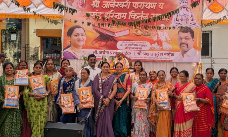 जळगाव : संत ज्ञानेश्वरांच्या अमृतवाणीतून समाजात भक्ती, नैतिकता आणि सेवा भाव जागृत ठेवण्याच्या उद्देशाने आयोजित ज्ञानेश्वरी पारायण सप्ताह मोठ्या भक्तिभावाने सुरू आहे. पारायणासाठी दररोज मोठ्या संख्येने महिला पारायण बसून सहभाग घेत आहेत.