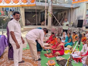 या पारायण सप्ताहातील विशेष उपक्रमांतर्गत आज आमदार राजू मामा भोळे व मा. महापौर ज.श.म.न.पा सौ.सीमाताई भोळे यांच्या हस्ते पारायण बसलेल्या महिलांना पैठणी वाटप करण्यात आले. प्रत्येक लाभार्थी महिलेच्या चेहऱ्यावर आनंद आणि समाधानाची झळाळी पाहायला मिळाली.