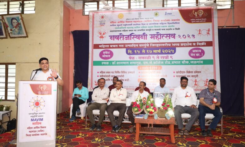जळगाव ( दि. 15 ) – महिला आर्थिक विकास महामंडळ (माविम), जिल्हा कार्यालय जळगाव यांच्या वतीने आयोजित “नवतेजस्विनी महोत्सवा” चे उद्घाटन जिल्हा अधीक्षक कृषि अधिकारी कुर्बान तडवी यांच्या हस्ते उत्साहात संपन्न झाले. हा महोत्सव माविमच्या सुवर्ण महोत्सवी वर्धापन दिनानिमित्त व जागतिक महिला दिनाचे औचित्य साधून दि. १५ मार्च ते १७ मार्च २०२५ या कालावधीत शानभाग सभागृह, एम. जे. कॉलेज चौफुली, प्रभात चौक, जळगाव येथे सकाळी ९ ते रात्री ९ दरम्यान भरविण्यात आला आहे.