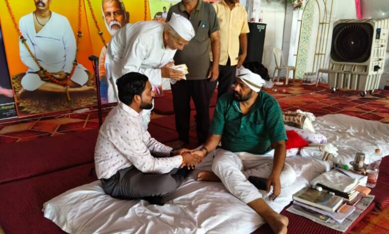 जनहितासाठी सुरू असलेल्या बच्चू भाऊ कडू यांच्या बेमुदत अन्नत्याग उपोषणाला आज सातवा दिवस असून, त्यांच्या आंदोलनाला पाठिंबा देण्यासाठी छावा मराठा युवा महासंघाचे पदाधिकारी तथा समाजसेवक किरण ठाकूर यांनी आज सकाळी ८ वाजता मोझरी (ता. धामणगाव रेल्वे) येथे भेट दिली.