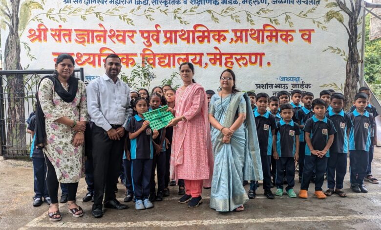 जळगाव – श्री संत ज्ञानेश्वर प्राथमिक व माध्यमिक विद्यालया मध्ये शैक्षणिक दिनदर्शिका 2025 26 चे उद्घाटन केंद्र क्रमांक 6 च्या केंद्रप्रमुख तृप्ती बागुल यांच्या हस्ते करण्यात आले. शैक्षणिक दिनदर्शिका ही एक अशी चौकट आहे ज्याद्वारे शाळेचे दैनंदिन कामाचा एक महत्त्वाचा भाग चालवणाऱ्या महत्त्वाच्या तारखा दर्शविल्या आहे शाळेतील विद्यार्थ्यांना शिक्षकांना व पालकांना शैक्षणिक वर्ष आणि सत्र २०२५-२०२६ च्या सत्रातील प्रमुख उपक्रमाबद्दल माहिती दिलेली आहे.