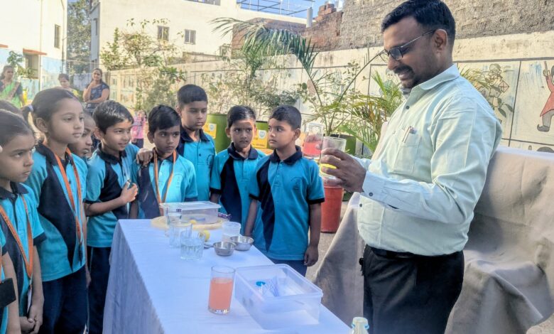 जळगाव : संत ज्ञानेश्वर विद्यालय येथे इयत्ता पहिली व दुसरीच्या विद्यार्थ्यांसाठी विज्ञान विषयाचे सोपे व रंजक प्रयोग सादर करण्यात आले. या उपक्रमातून विद्यार्थ्यांनी विज्ञानातील मूलभूत संकल्पना प्रत्यक्ष प्रयोगांच्या माध्यमातून आनंदाने आत्मसात केल्या.