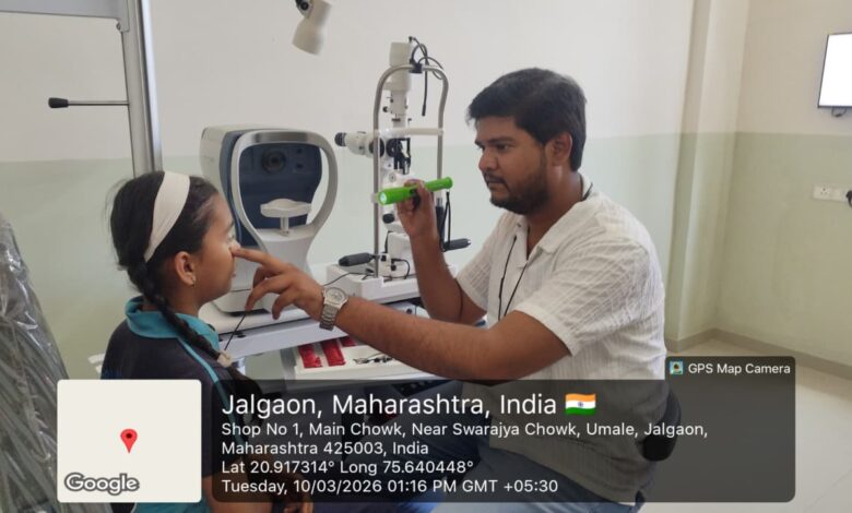 जळगाव – संत ज्ञानेश्वर विद्यालयात विद्यार्थ्यांच्या आरोग्याची काळजी घेत मोफत नेत्र व आरोग्य तपासणी शिबिराचे आयोजन करण्यात आले. या शिबिरामध्ये विद्यार्थ्यांची नेत्र तपासणी, सामान्य आरोग्य तपासणी तसेच आरोग्यविषयक मार्गदर्शन करण्यात आले. तज्ञ डॉक्टरांच्या टीमकडून विद्यार्थ्यांना डोळ्यांची काळजी कशी घ्यावी, योग्य आहार व स्वच्छतेचे महत्त्व याबाबत सविस्तर माहिती देण्यात आली.