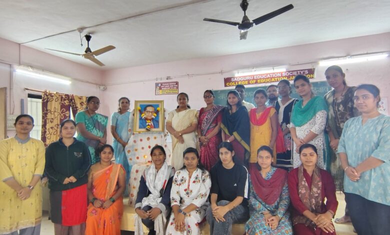 जळगाव – सद्गुरु एज्युकेशन सोसायटीचे शिक्षणशास्त्र महाविद्यालय, जळगाव येथे भारतरत्न डॉ. बाबासाहेब आंबेडकर यांच्या महापरिनिर्वाण दिनानिमित्त श्रद्धांजली कार्यक्रमाचे आयोजन करण्यात आले. कार्यक्रमाचे अध्यक्षस्थानी महाविद्यालयाच्या प्रभारी प्राचार्या डॉ. अनिता वानखेडे होत्या. त्यांच्या शुभहस्ते डॉ. आंबेडकरांच्या प्रतिमेचे पूजन व माल्यार्पण करून कार्यक्रमाची सुरुवात झाली. याप्रसंगी महाविद्यालयातील डॉ. प्रतिभा पाटील, डॉ. जयश्री पाटील, सु. प्राध्यापिका सुवर्णा अहिरे तसेच प्रथम व द्वितीय वर्षातील विद्यार्थी-शिक्षक मोठ्या संख्येने उपस्थित होते.