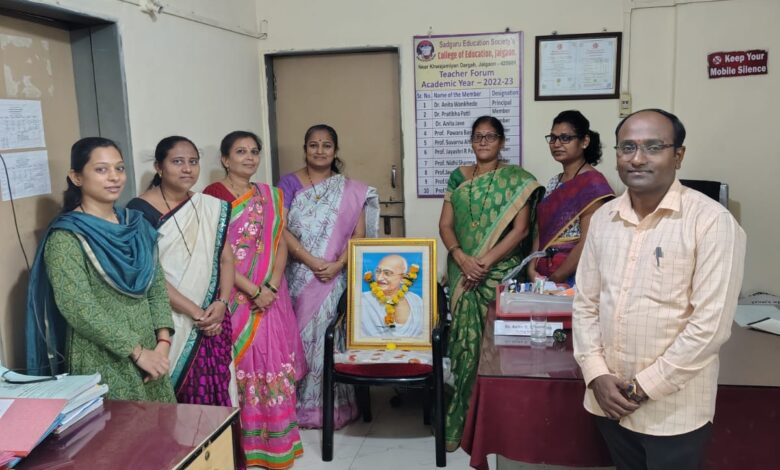 सद्गुरु शिक्षण शास्त्र महाविद्यालयात महात्मा गांधी जयंती उत्साहात साजरी
