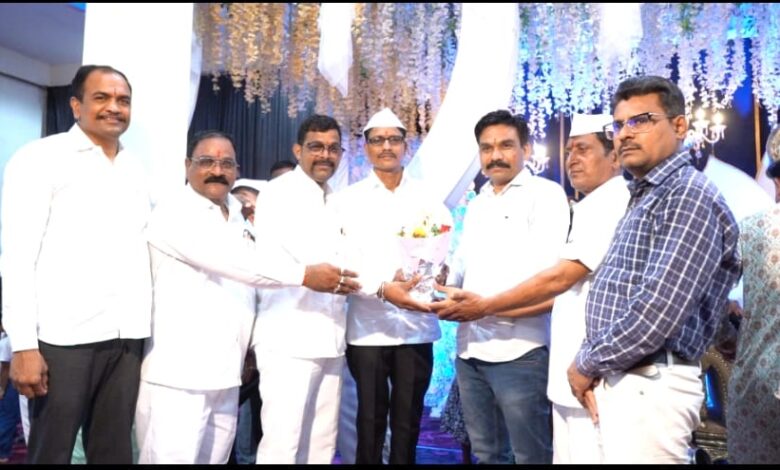 जळगाव : वंजारी समाजात विवाह मुहूर्तावर लावून समाजात आदर्श निर्माण करणाऱ्या कुटुंबांचा सत्कार वंजारी युवा संघटनेतर्फे अध्यक्ष प्रशांत नाईक यांच्या संकल्पनेतून करण्यात आला. लाडवंजारी मंगल कार्यालय, जळगाव येथे पार पडलेल्या या कार्यक्रमात नव दांपत्याचे वडील विजय पंडित वाघ (वरपिता) व नंदू सुभाष घुगे पाटील (वधूपिता) यांचा जळगाव महानगरपालिकेचे उपायुक्त गणेश चाटे यांच्या हस्ते गौरव करण्यात आला.