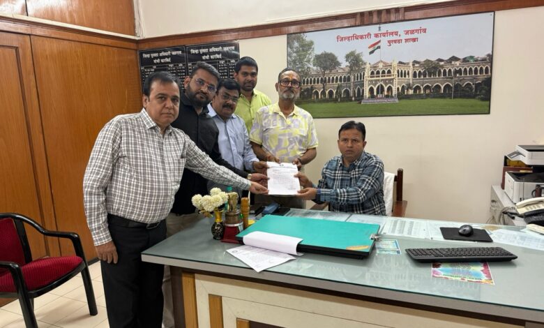 निवेदन देतांना संघटनेचे अध्यक्ष लेखराज उपाध्याय, उपाध्यक्ष ललित पाटील, सचिव संजय जगताप यांच्यासह संघटनेचे पदाधिकारी उपस्थित होते.